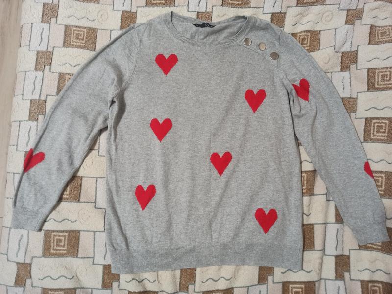 Светр з яскравими сердечками. ПГ 52 см, плечі 41 см, довжина 62 см, довжина рукава 56 см.