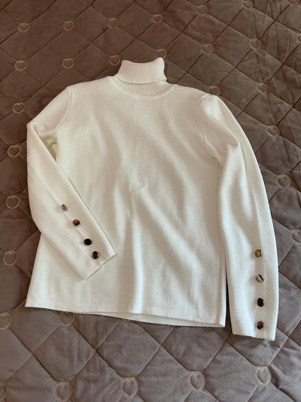 Светр з горловиною молочного кольору елегантно виглядає довжина 59 см довжина рукава 57 см напівобʼєм грудей 46 см