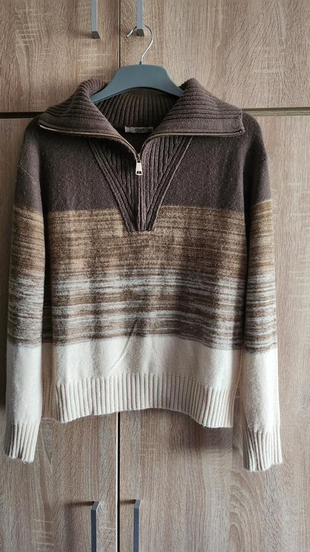 Светр Colins на застібці, з колекції "naturе". Крій прямий, тому дана модель вказана як хс, хоча на тілі сидить як С. дивлячись яка посадка вам подобається, тому підійде і на 34, і на 36 розмір. у складі шерсть светр новий , дуже гарне поєднання кольорів та універсальність у повсякденні забирайте свій светри, він на вас чекає🩷🫶 акція 1+1=3 :)