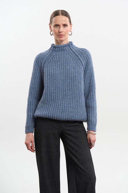 Теплий светр виготовлений із пряжі з високим вмістом вовни мериноса та альпаки, м'який та приємний до тіла. Об'ємна в'язка додає стилю та затишку. Комфортний комір-стійка та рукав-реглан. Довжина 61 - 65 см (+- 2 см). Ширина у спокійному нерозтягнутому стані 50 - 56 см. у розтягнутому стані 56 - 62 см. Довжина рукава від шиї 66 - 67 см.