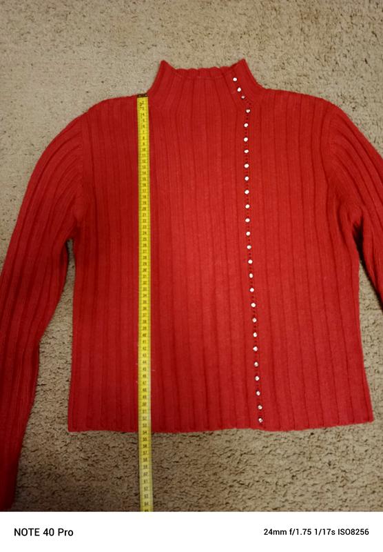 Красивий теплий светр. Модель актуальна на сьогодні. Оздоблений камінцями, які міцно тримаються, при пранні не відпадуть. Стан ідеальний, носила мало, так, як став малим на мене.