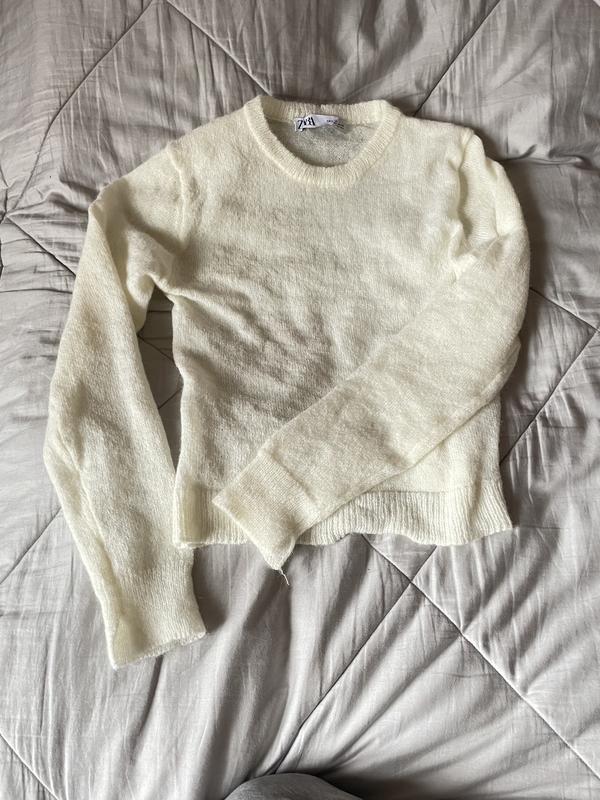 Светр від бренду ЗАРА, вкорочений, теплий та приємний до тіла, на рукавах має розрізи