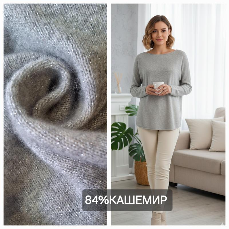 Кашеміровий м'який светр оверсайз/безшовный по линии проймы/ світло-сірого відтінку/вкраплення люрекс-срібло/низ заокруглений/Cashmere CHARTER CLUB Розмір вказаний XS-більшемірить Замеры ПОГ 51 тянется 63 ПОТ 48 низ 50-63 ДР от горловины 64 длина по спинке от плеча 71 см Склад 84% кашемір 10% поліестер 6% металік Працюю так-оплата на карту-відправка Доставка НП УП Возврата обміну немає Підписуйтесь на оновлення-товар додається