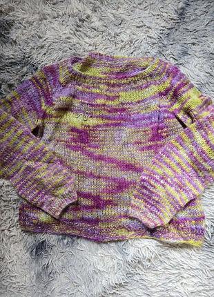 светр ручної роботи. в реалі більш яскравіший мохер. дуже теплий. розмір оверсайз, підійде до 54 батал пог 62-75 низ 63-79 довж 62 вартість 950 грн без торгу! брошка у вартість не входить! обміну повернення немає, робіть покупки обдуманно