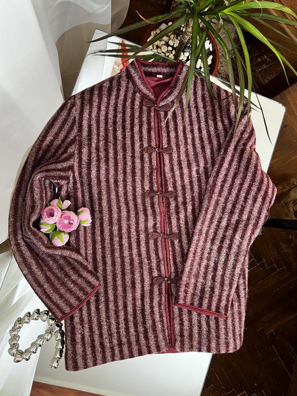 Кофта в азіатському стилі, розмір вказаний Л, але пені на хс теж підійшов Ширина:48 см Довжина: 62 см