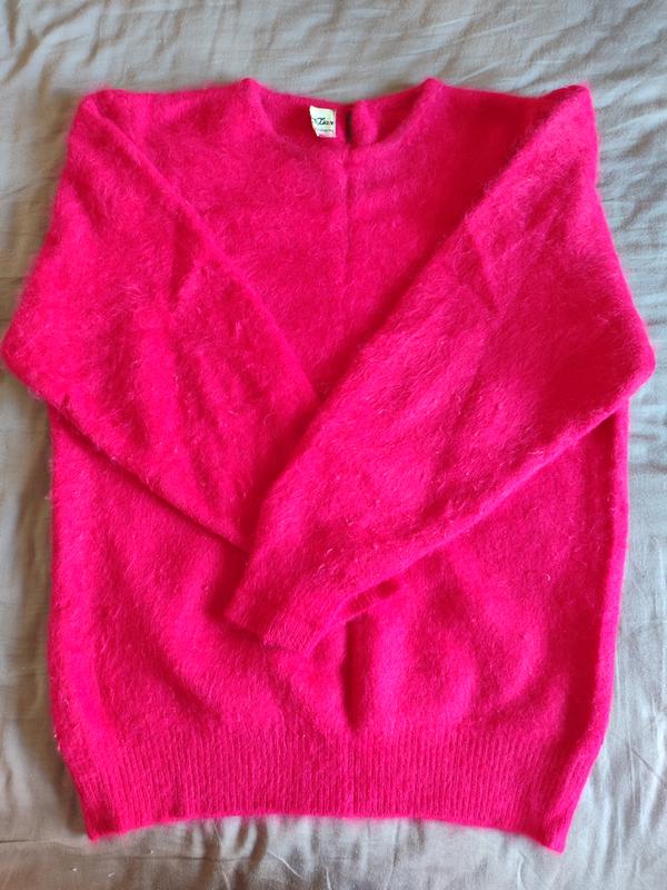 свитер из пушистой ангоры, теплый, мягкий, насыщенного малинового цвета,, рукав с защипами, сзади пуговка на горловине, из нюансов катышки, которые легко удалить, замеры на фото