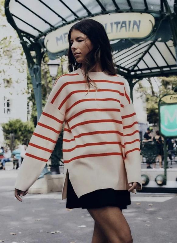 🌿светр в смужку від Zara вільного крою, тканина цупка, тримає форму Розмір:L Заміри:ПОГ 59 см, довжина 68 см, рукав від горловини 72 см