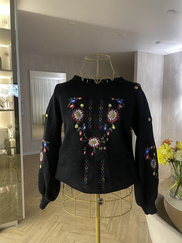 Стильний оригінальний светр-вишиванка з обємним рукавом