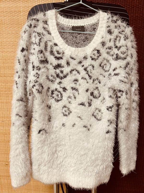 Свитер белого цвета в принт леопард, мягкий теплый пушистый