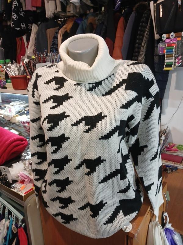 білий светр з високим коміром. розмір S. довжина 68 см плечі приспущені 55 см по груди 56 см рукав 48 см 60/287