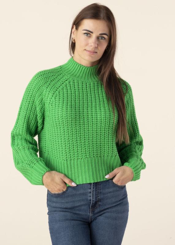Вязанный свитер акрил с воротником стойкой, женский зеленый свитер, теплый свитер, джемпер с воротником
