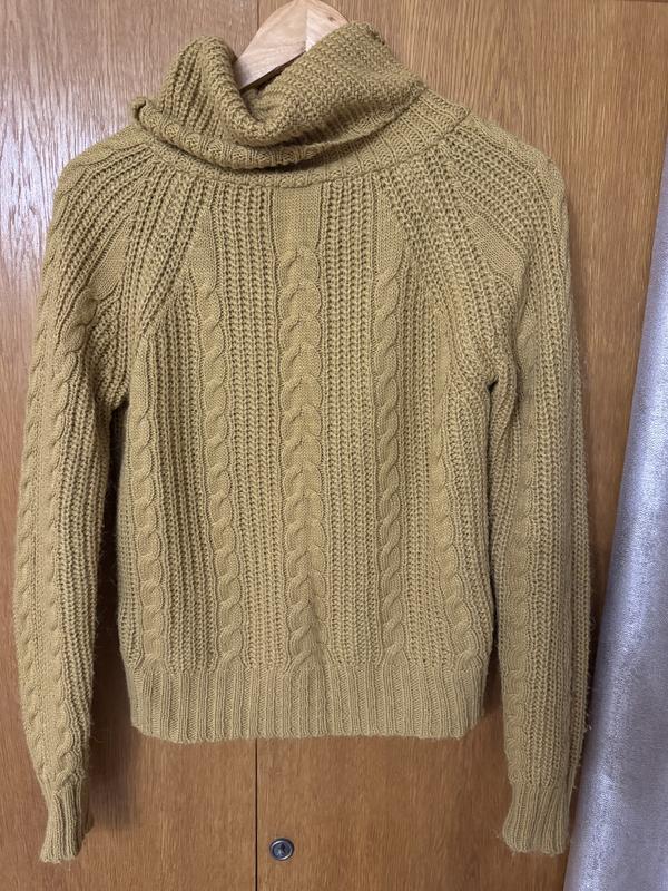 Жіночий светр гірчичного кольору грубої вʼязки. З коміром. Підійде на розмір S-M. Довжина - 57 см, довжина рукава від шиї - 72 см, напів охват - 44 см.