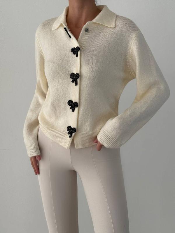 Кардиган ПРОСТО ВАУ НОВИНКА 💕 Модель 4575 Розмір універсальний 42/48 Машинна вʼязка Виробник Туреччина 🇹🇷 Укорочений кардиган із декоративними застібками у вигляді бантиків. Кольор: чорний, молочний, хакі, шоколад, бордо, графіт Заміри ОГ-54 см Довжина по спинці - 55 см Довжина рукава від ворота- 68 см Похибка замірів на трикотажних речах +-2-3см