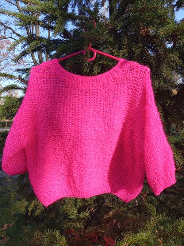 Ручна робота, oversize, яскраво-рожевого кольору, рукав 3/4.