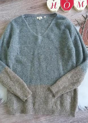 двоколірний светр із V-подібним вирізом. Колір: Верхня частина та рукави светра мають сірий колір, який переходить у бежевий або світло-коричневий відтінок ближче до манжетів та нижнього краю. Фасон: Светр має вільний крій та довгі рукави. Деталі: Присутній V-подібний виріз горловини. На комірі бірка виробника. Матеріал: Текстура тканини виглядає м'якою та пухнастою, з додаванням мохеру та акрилу. Новий , але без бумажної бірки. Розмі м. Добре тягнеться. Не колиться. Заміри ⤵️⤵️⤵️ Довжина-76см Рукав від горловини-77см Пог-55см 💗💗💗 пересилаю новою поштою та укрпоштою. є накладений платіж по предоплаті. детальніше про умови читайте в описі в розділі " ПРО МЕНЕ "