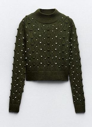 Вʼязаний светр Zara з відкритим вирізом ззаду та перлинами Розмір: xl по бірці, але дуже маломірить (скоріш за все бірка помилкова) Довжина 48 см Пог 58 см