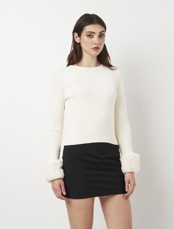 Білий светр Zara з манжетами зі штучного хутра, розмір S, стан ідеальний, без дефектів