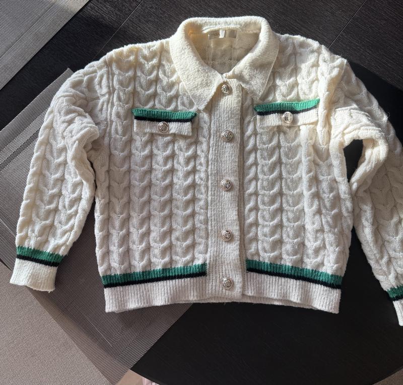Дуже тепла, нарядна кофта від Maje. Підійде на невисоку дівчину, чи жінку. Обьем груди 52( она немного оверсайз) длина по переду от плеча 48. Длина рукава от горловины 66 см.