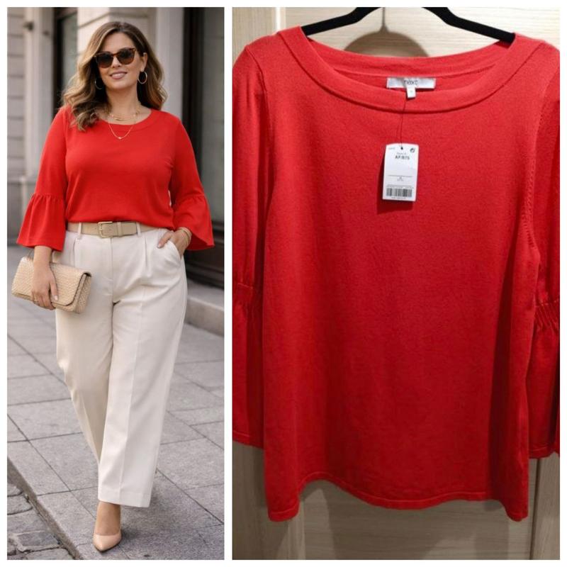 груди 1/2 - 51 см довжина светра від плечового шва 66,5 см довжина рукава від плеча 56 см склад светра 80 відсотків віскози та 20 нейлону, тому підходить на любий сезон, колір кораловий, тканина дуже мякенька та приємна до тіла, горловина у вигляді човника, рукав ніби приталений, що придає светру народності. Дефектів немає.