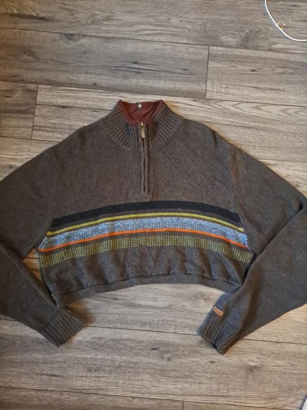 укороченний светр з високим горлом на молнії,болотного кольру,заміри:ног 54,нот 48,довжина 48