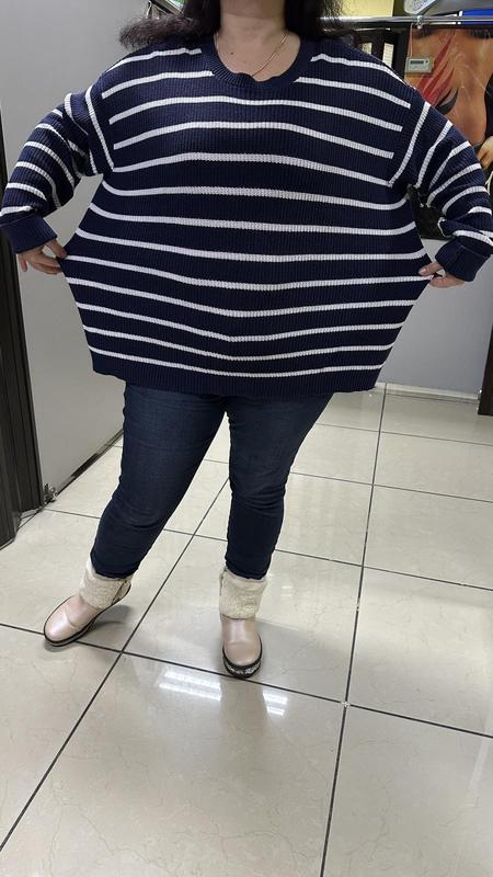 Свитер большого размера Длина 73 Грудь полуобьем 80 Низ полуобьем 80 Рукав от шеи 86 Ткань коттон 60 и акрил 40