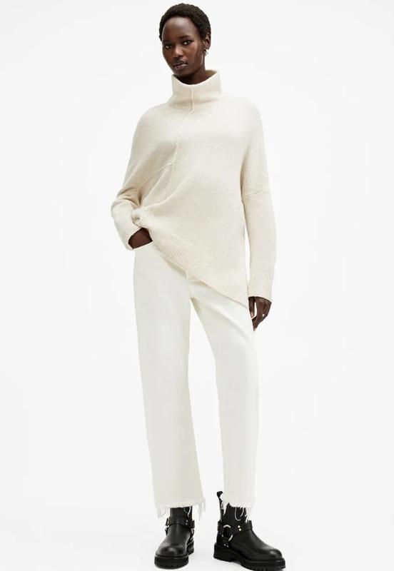 Шерстяной свитер AllSaints Lock Roll. В хорошем состоянии, без нюансов. Асимметричный крой, рукав реглан, свободный фасон. В цвете сливочного масла. Размер S. Длина 59/67 см Ширина 65 см