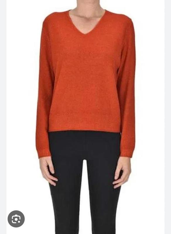 Жіночий светр від Stefanel виготовлений з якісної італійської пряжі у насиченому відтінку, схожому на теракотовий або глибокий іржаво-червоний. Він має класичний, але елегантний дизайн із V-подібним вирізом та довгими рукавами, що створює універсальний силует. Згідно з етикеткою, склад тканини — це 50% акрил і 50% вовна, що забезпечує м'якість, тепло та легкість у догляді. Светр сидить по фігурі, але не обтягує, що робить його ідеальним для створення як повсякденних, так і більш вишуканих образів, особливо в холодну пору року. Виробник Stefanel S.P.A. знаходиться в Італії, що підкреслює високу якість та уважність до деталей. Ідеально підійде до сорочки. Заміри: плечі- 40 пог- 54 рукав- 62 довжина - 62 вказаний розмір- S