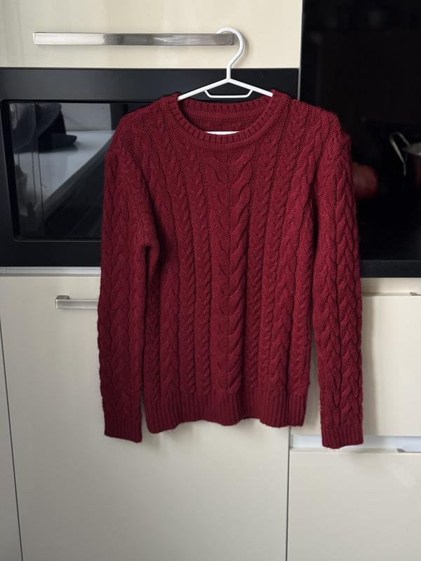 Бордовый шерстяной свитер h&m с узором косичка размер s-m джемпер лонгслив