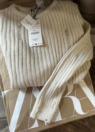 Светр із подертостями, круглим коміром і довгими рукавами. Тканина з овечою та альпаковою вовною. Дуже ніжний та приємний до тіла, ще й тренд сезону. бежевий колір Розмір М