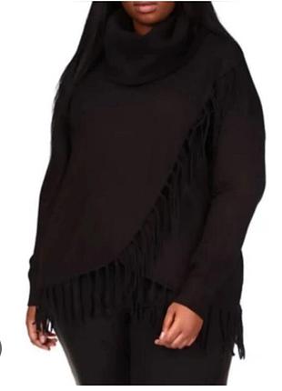 Жіночий светр, кофта с воротником-хомутиком и бахромой, цвет черный, спрашивайте есть разные размеры