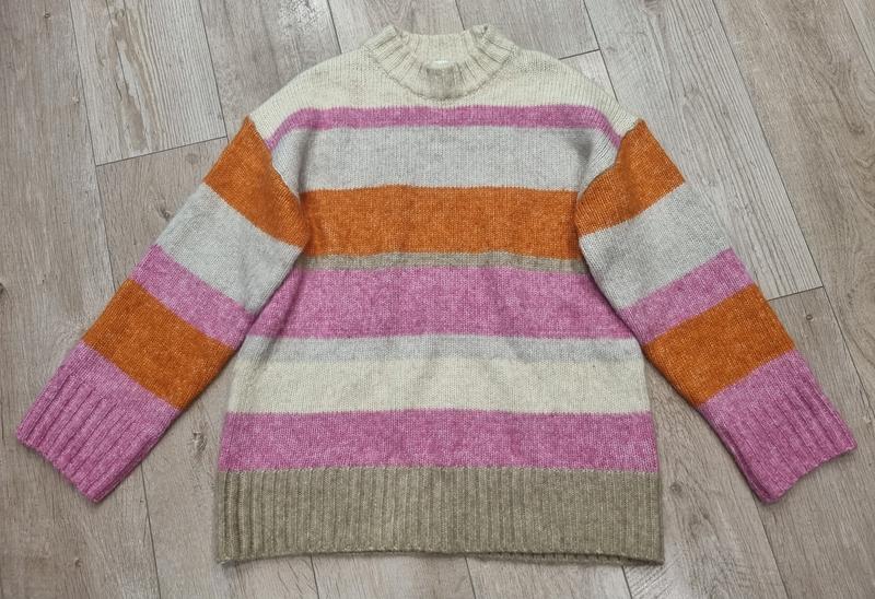 Светр H&M розмір по бірці М, але краще сяде на L. Заміри на фото. Оверсайз, приспущене плече. У складі трошки альпаки.