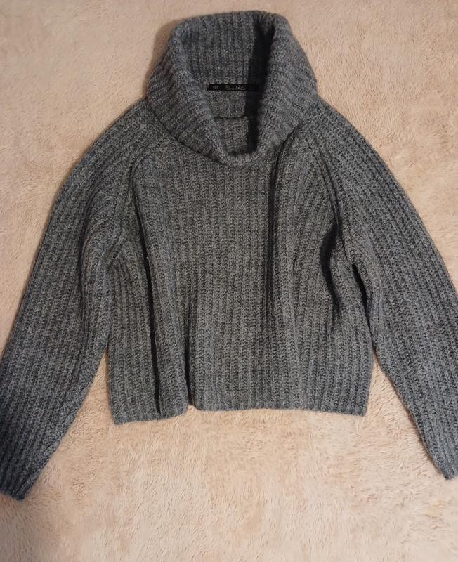 теплий укорочений жіночий светр розмір М бренду Zara в ідеальному стані колір сірий. вовна, мохер. напівобхват грудей 57 см. рукав від горловини 61 см. довжина 47 см. ширина низу 61 см. м’який, теплий. вільного крою. L.