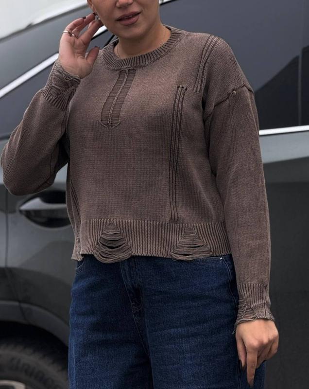 💙💛СВЕТР ЖІНОЧИЙ блакитний Моделька з елементами рванки. Тканина приємна до тіла. Гарно тягнеться. Країна виробник: Китай. ✂️Матеріал: кашемір/машинна в'язка ⭐️Гарної якості . 🏷 Розміри: універсальний(42-48). Параметри Стефані : 87-74-94 Зріст 169см