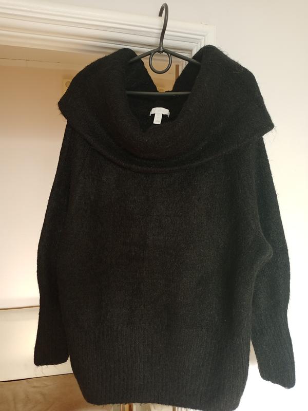 дуже теплий, плотний, м'який светр, горловина велика двойна , можна вдягати на голову, Не розтягнутий, без катишок коляру насичений чорний.Стан нової речі.
