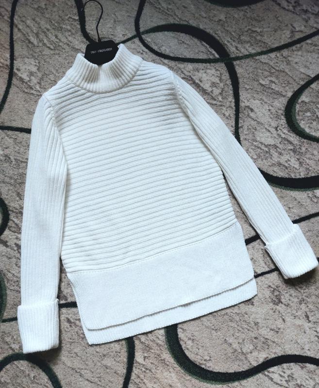 Теплий подовжений светр з розрізами по бокам, середньою горловиною. Виглядає стильно. В складі є вовна. Заміри: рукав 64см, довжина від плеча 62/67см, ПОГ 50см. Дивіться інші мої оголошення! Приємних покупок)