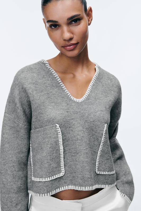 Сірий светр вільного фасону 49% поліестер, 35% акрил, 8% віскоза, 4% вовна, 3% поліамід, 1% еластан Стан ідеальний Розмір С Півобхват грудей - 63 см Довжина рукава від горловини - 74 см Довжина -53 см