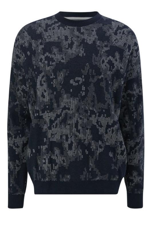Чоловічий светр від бренду s.Oliver виконаний у темно-синьому кольорі з привабливим текстурованим візерунком, схожим на піксельний камуфляж. Це стильна модель вільного крою з класичним круглим вирізом горловини та рубчастими манжетами для комфортної посадки. Ідеально підходить для створення повсякденного або напівформального образу.