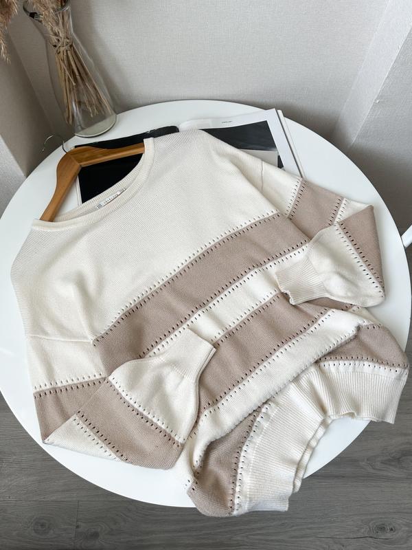 Lakeland Біло бежевий вільний светр в смужку Стан чудовий ――――――― розмір L по груди 57 по низу 47 рукав від горловини 75 довжина 71 ――――――― віскоза