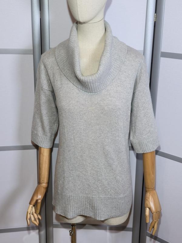 F&F кашемировый серый свитер с объемной горловиной и укороченными рукавами 100% кашемир, невероятно приятный к телу, мягкий и нежный, не тонкий! Идеальное состояние Размер UK 14 длина от плеча -70 полуобхват в груди -50 в талии -46 полуобхват внизу-50 плечо-18 рукав -35 ширина в плечах -57 полу охват в бицепсе -23 горловина-23 Возвращение не предусмотрено