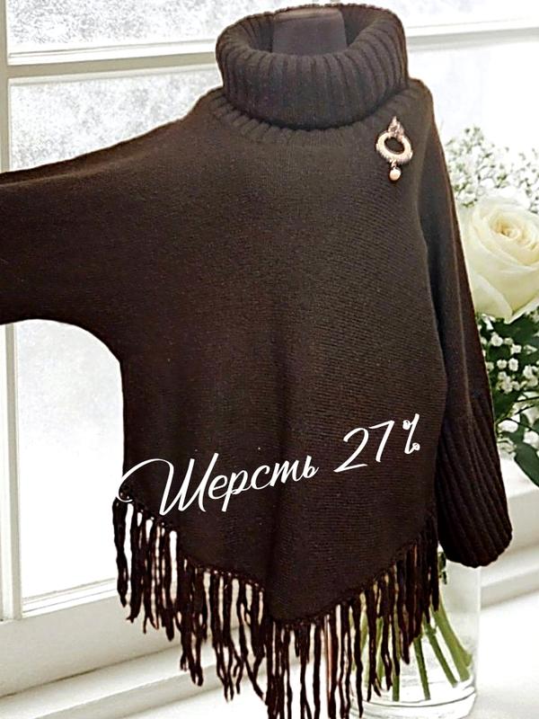 Брендовий дуже теплий вовняний светр пончо великого розміру оверсайз вовна
