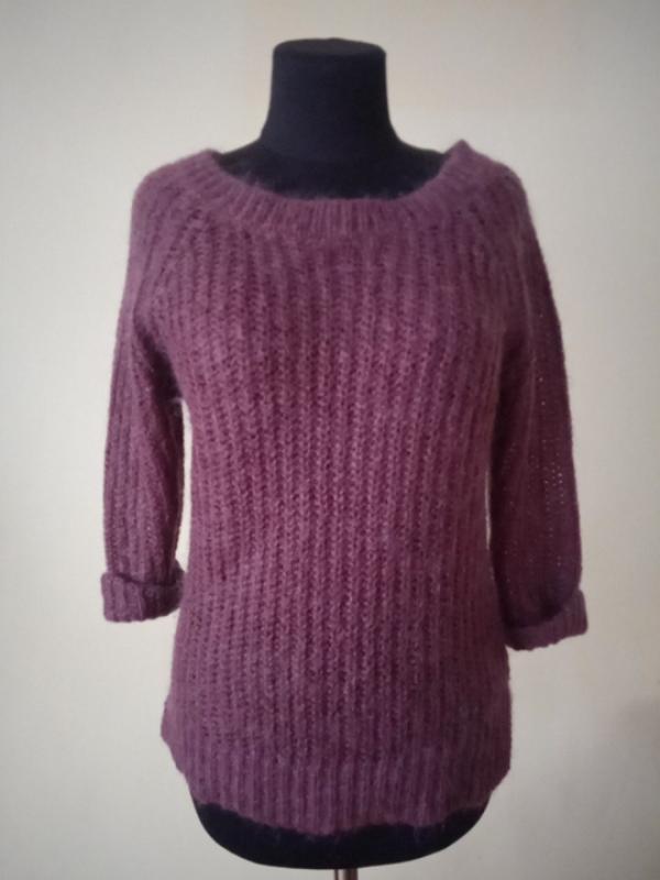 Довжина 60 см. Напівоб'єм грудей 42 см. Рукава реглан від горловини 47 см. Мохер точно присутній. Об'ємна в'язка. Колір бордо,швидше як на другому фото.Дефектів немає.