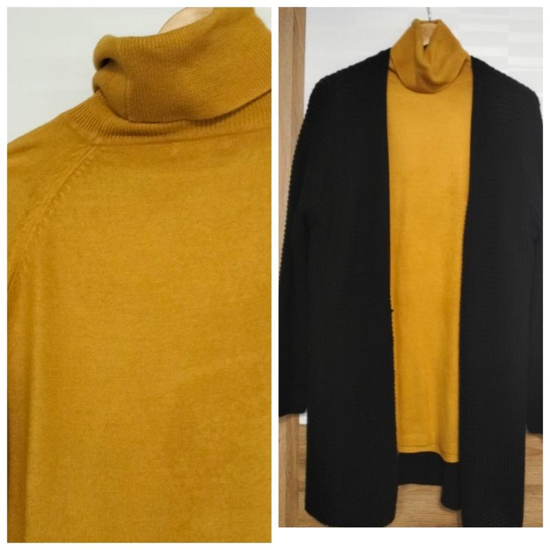 гірчично-жовта водолазка-светр Вона виготовлена з органічної бавовни та з вовною, має вільний крій та рівний поділ. жіночий светр- гольф) гірчичного або жовтого кольору. характеризується високим коміром, що не сильно облягає шию. Колір: Гірчичний або насичений жовтий. Стиль: Крій вільний, Топ / светр з високим коміром і довгими рукавами реглан, має вільний крій (туніка, що видно по тому, як тканина спадає.