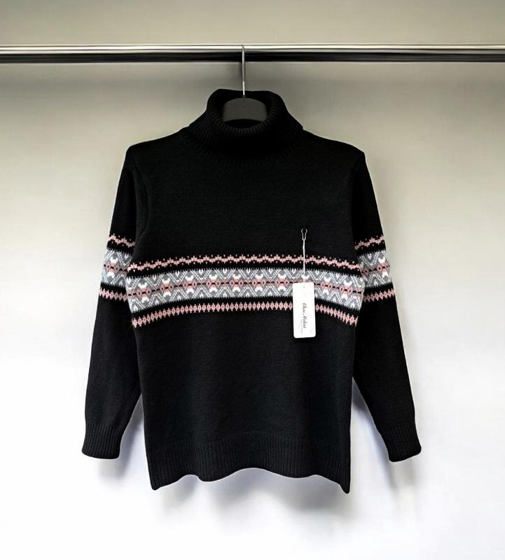 !!!Не оформляйте пожалуйста заказ, не уточнил наличие Женский вязаный свитер с высокой горловиной всегда актуальный и теплый элемент гардероба. Модель с орнаментом прилегающего силуэта из мягкой пряжи. Материал: машинная вязка Состав: 80% кашемир, 20% шерсть Цвет: черный Размер единственный, см. и ориентируйтесь на замеры, в зависимости от степени прилегания к телу любите носить одежду. Замеры указаны по готовому изделию в спокойном не растянутом состоянии, допускается погрешность в измерениях +/-2см Растяжимость в ткани высокая. - п/о груди 48-49см, ширина плеч 35-36см, длина рукава 55-56см, длина по спине 60см Замеры и фото, кроме тех, что на модели Мои лично. На все волнующие вопросы ответь в уведомлении.