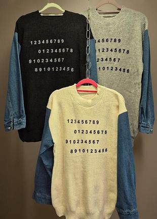 Светр,кофта 🤩Модель: 451 🤩Розмір: 40-46(універсальний) 🤩Тканина: машинне в‘язка+джинс🇹🇷 🤩Колір: як на фото 🤩Фабричне пошиття 🤩Виробник Китай