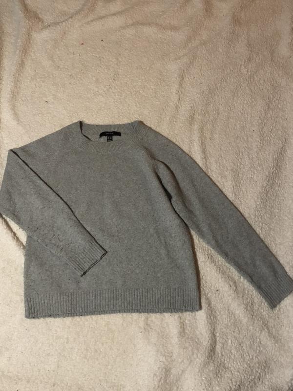 М’який і комфортний светр сірого кольору. Класичний фасон із круглою горловиною та еластичними манжетами. Ідеально пасує під джинси, штани або спідницю — базова річ на кожен день. Тканина приємна до тіла, не колеться. Стан: відмінний, без плям і пошкоджень Розмір S - M