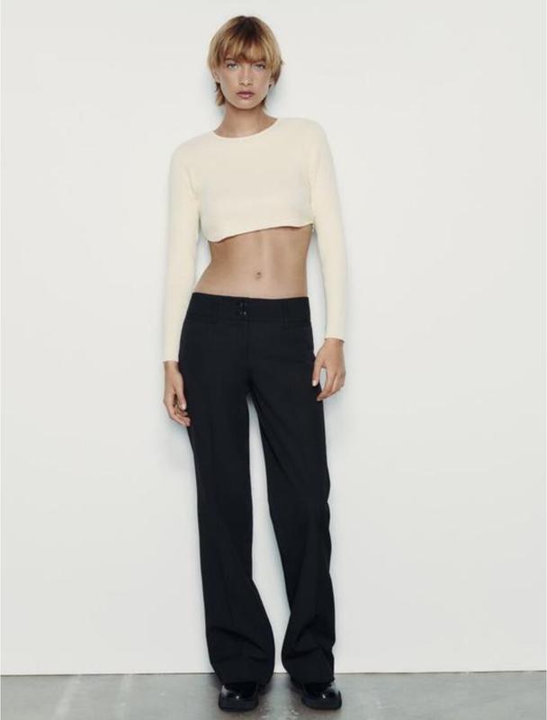 Укорочений топ з м'якої тканини. Круглий виріз, довгі рукави, металева бахрома зі стразами на нижній кромці.