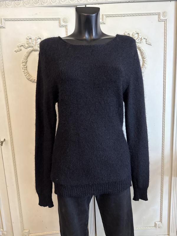 Колір чорний. Склад:мохер/поліамід(50/50). Розмір по бірці-L. Заміри: довжина-72 см, ПОГ-44 см, ПОБ-42 см, рукав-70 см. Стан ідеальний. Країна походження-Італія.