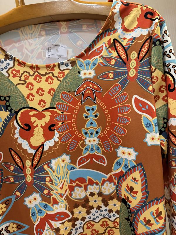 В наявності гарна кофточка. Розмір вказаний XL, за вимірами йде на 16. Склад немає... тканина добре тягнеться. ПОГ-57 і ще тягнеться, довжина спереду-76, з боків трохи довжиною — 88, плечі — 44, довжина рукава — 52, ширина по низу — 65... пошита трохи трапецією.