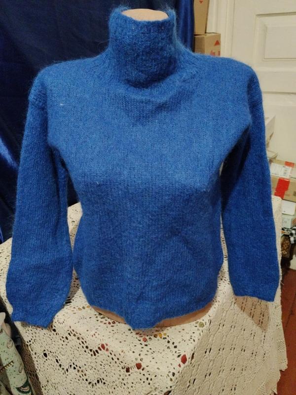 дуже гарний светрик вільного крою..Бірки немає,тканина м',ка,не кусається,тепленька і добре тягнеться..Розмір с,м,л. опис стан отлічний довжина 46 рукав 53 ширина груді 43