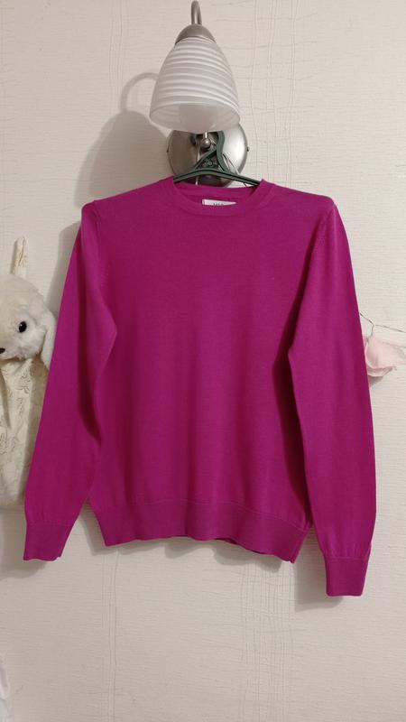 В стані нового чудовий яскравий светрик з 100 💯 вовни. Розмір 12, але орієнтуйтесь на заміри. Плечі - 39, рукав - 64, під пахвами - 52, довжина - 59.